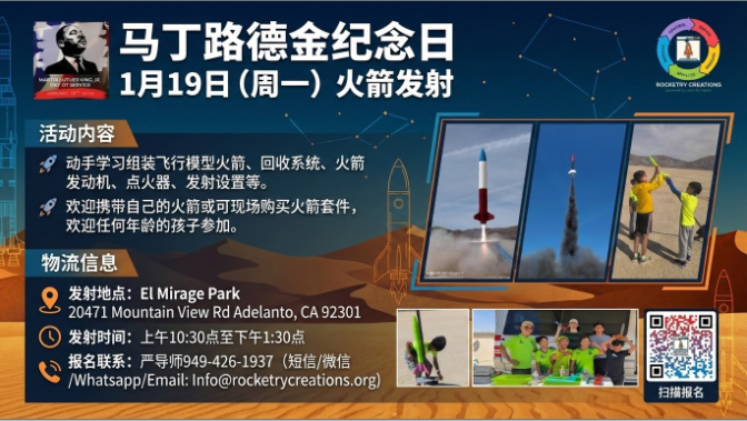 动手学习组装飞行模型火箭、回收系统、火箭发动机、点火器、发射设置等. 欢迎携带自己的火箭或可现场购买火箭套件, 欢迎任何年龄的孩子参加.